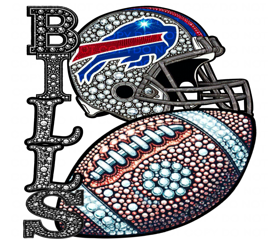 DTF Transfer • Buffalo Football • Rhinestone Letters (stacked) + Helmet & Football