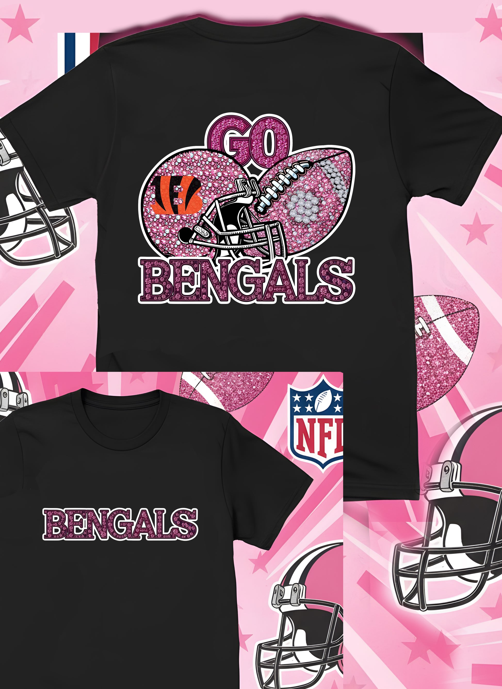 DTF Transfer • Cincinnati Football • Pink Out Rhinestones (GO) + Helmet & Football