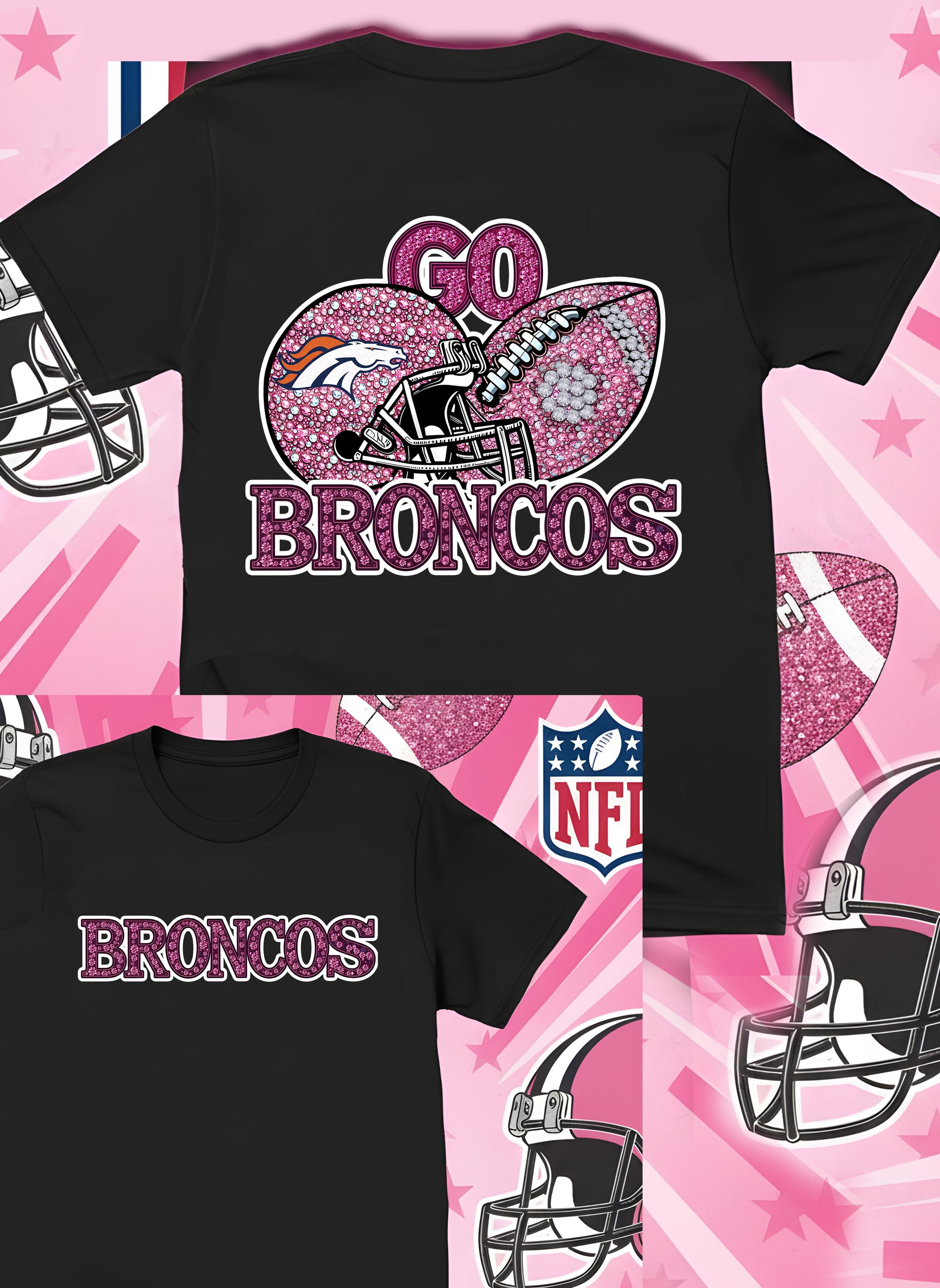 DTF Transfer • Denver Football • Pink Out Rhinestones (GO) + Helmet & Football