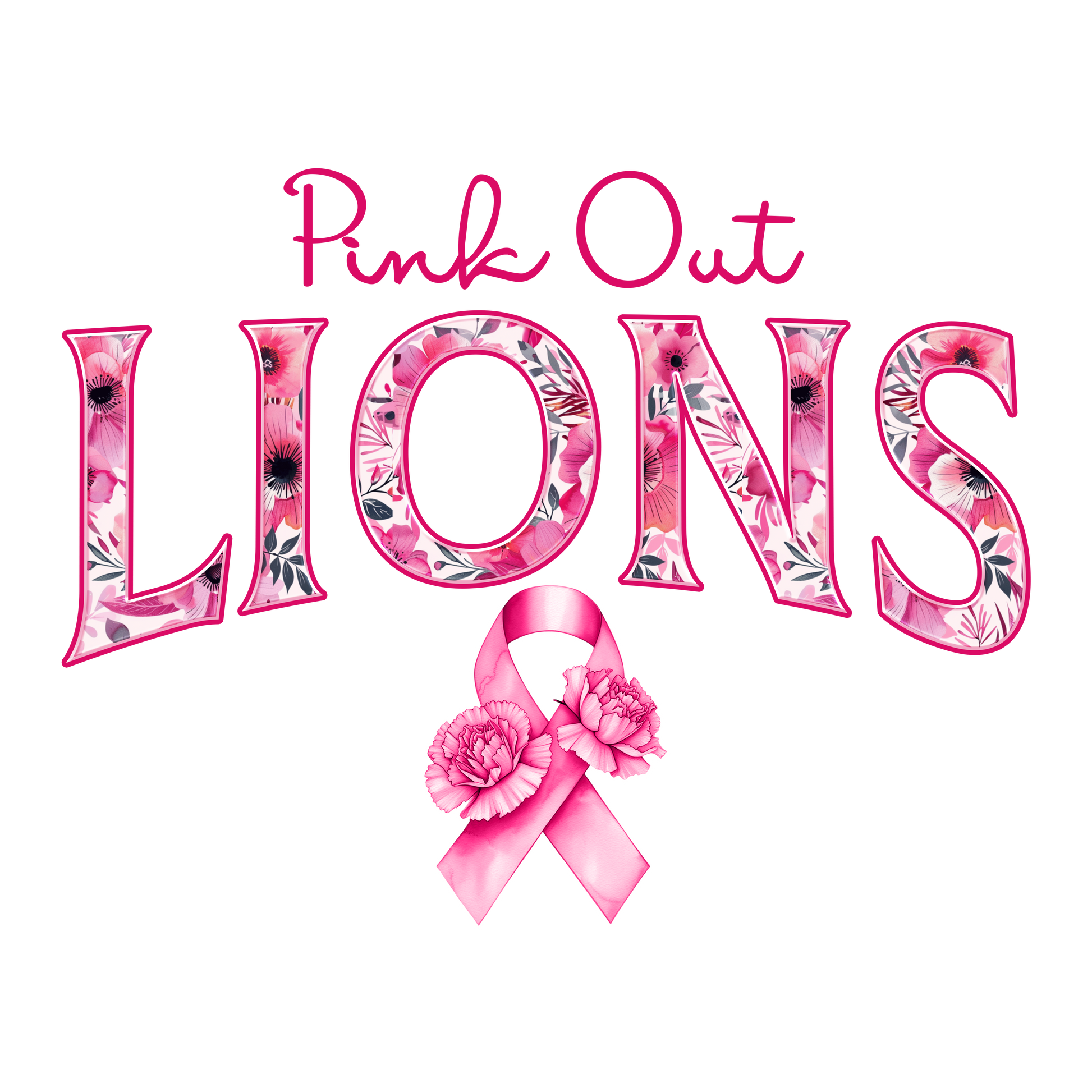 DTF Transfer • Detroit Football • Pink Out Floral + Ribbon