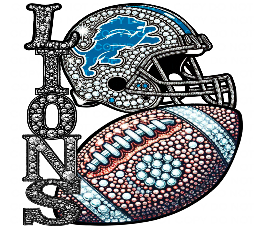 DTF Transfer • Detroit Football • Rhinestone Letters (stacked) + Helmet & Football