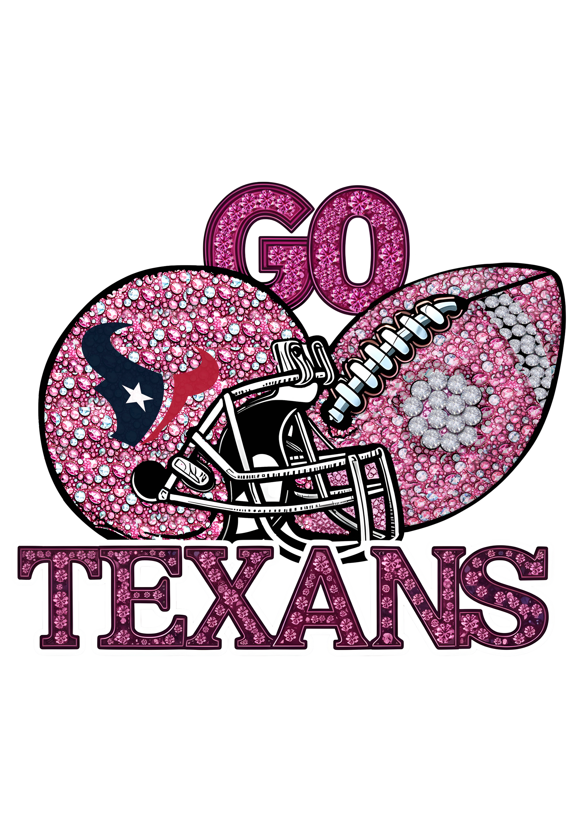 DTF Transfer • Houston Football • Pink Out Rhinestones (GO) + Helmet & Football