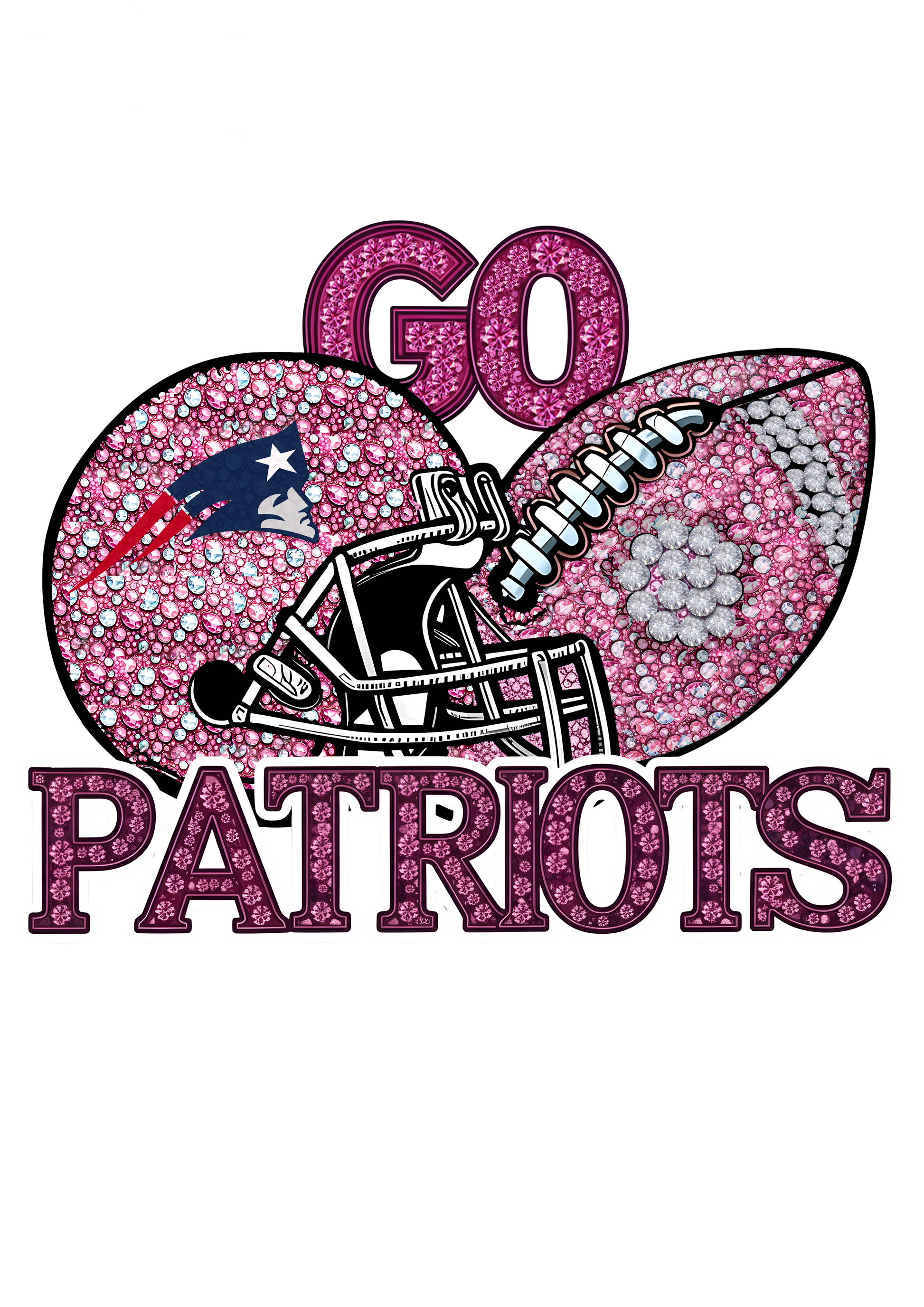 DTF Transfer • Patriots Football • Pink Out Rhinestones (GO) + Helmet & Football