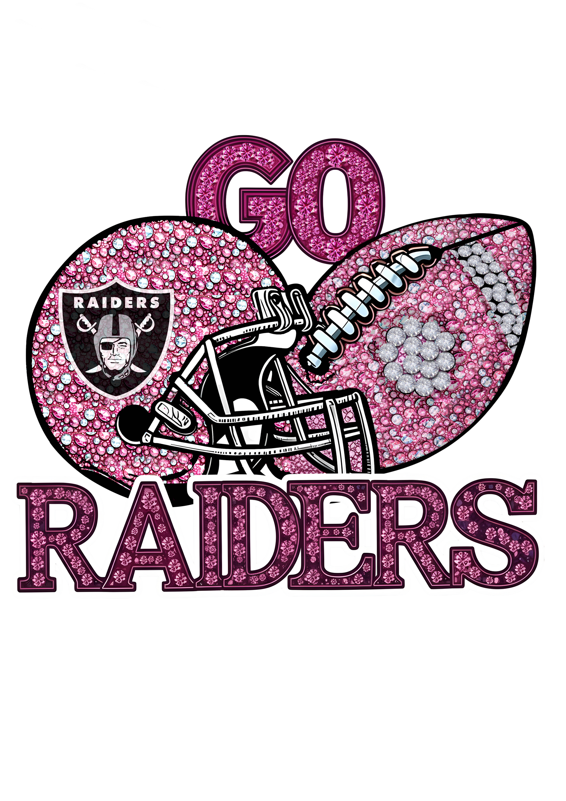 DTF Transfer • Raiders Football • Pink Out Rhinestones (GO) + Helmet & Football