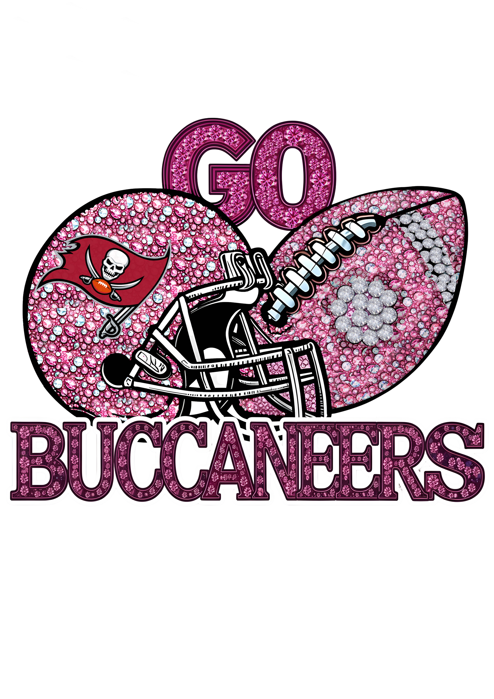 DTF Transfer • Tampa Bay Football • Pink Out Rhinestones (GO) + Helmet & Football