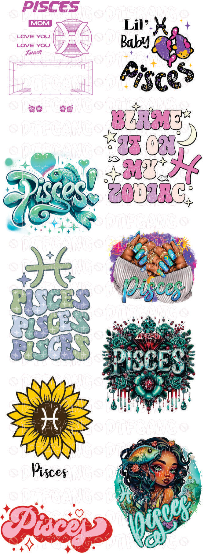 Gang Sheet • Pre Made DTF • Zodiac • Picses